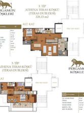 The Bergamon Kushklari project consists of 7 buildings with 160 apartments, 160 commercial offices and 100 stores. The project also includes a shopping center. The area of the duplex apartments attached to a garden in the construction called "Ares" is 374 square meters, the area of the duplex apartments attached to a terrace in the building called "Athens" is 254 square meters and the apartments 1+2 in the building called "Hera" 153 square meters and 1+4 apartments in The building called "Zeus" is 301 square meters.